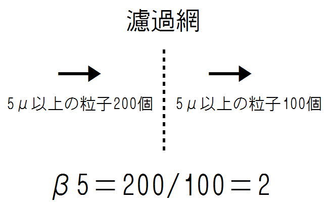 β値は濾過器の1次側と2次側の粒子数の差で算出します。
